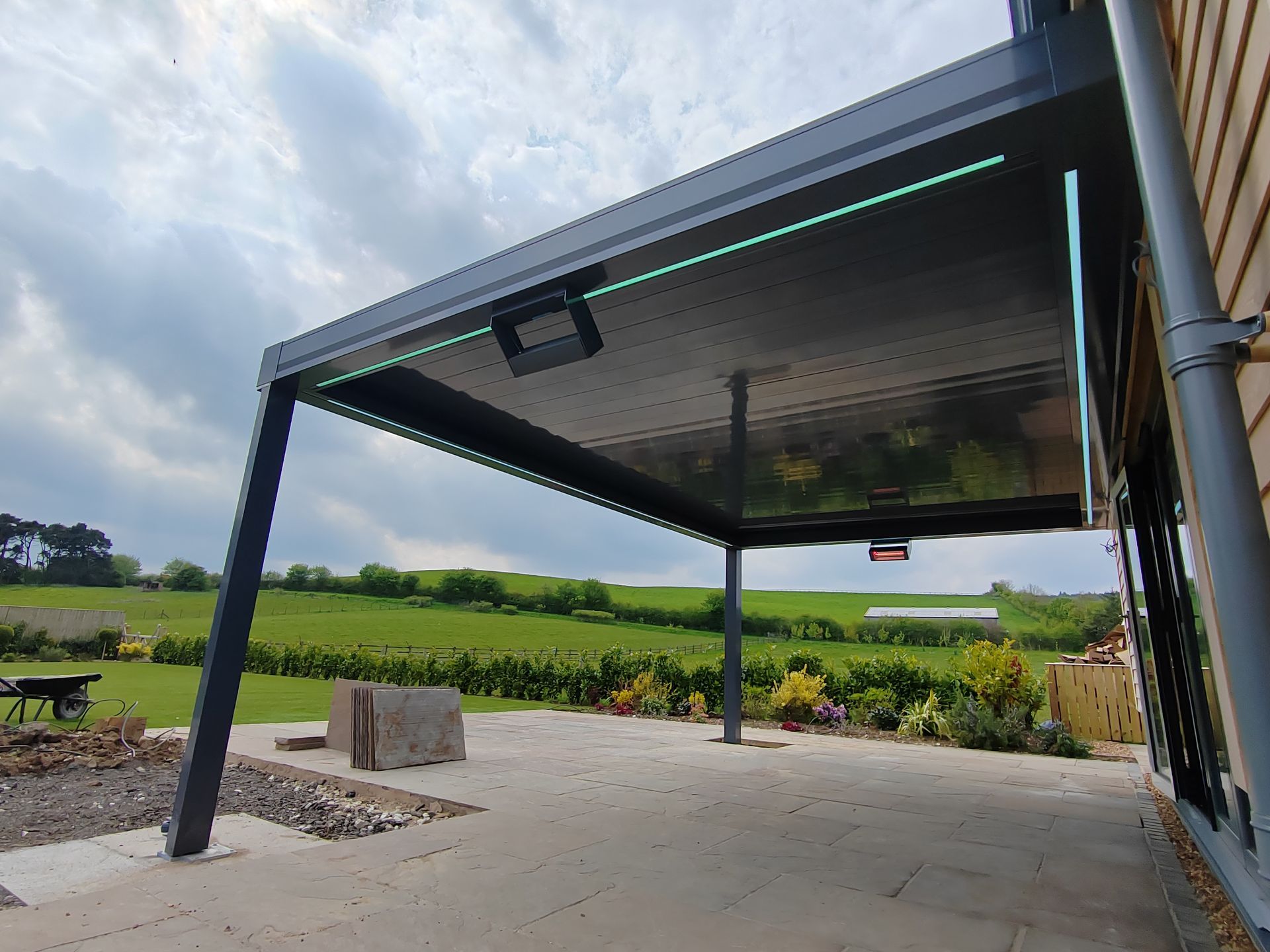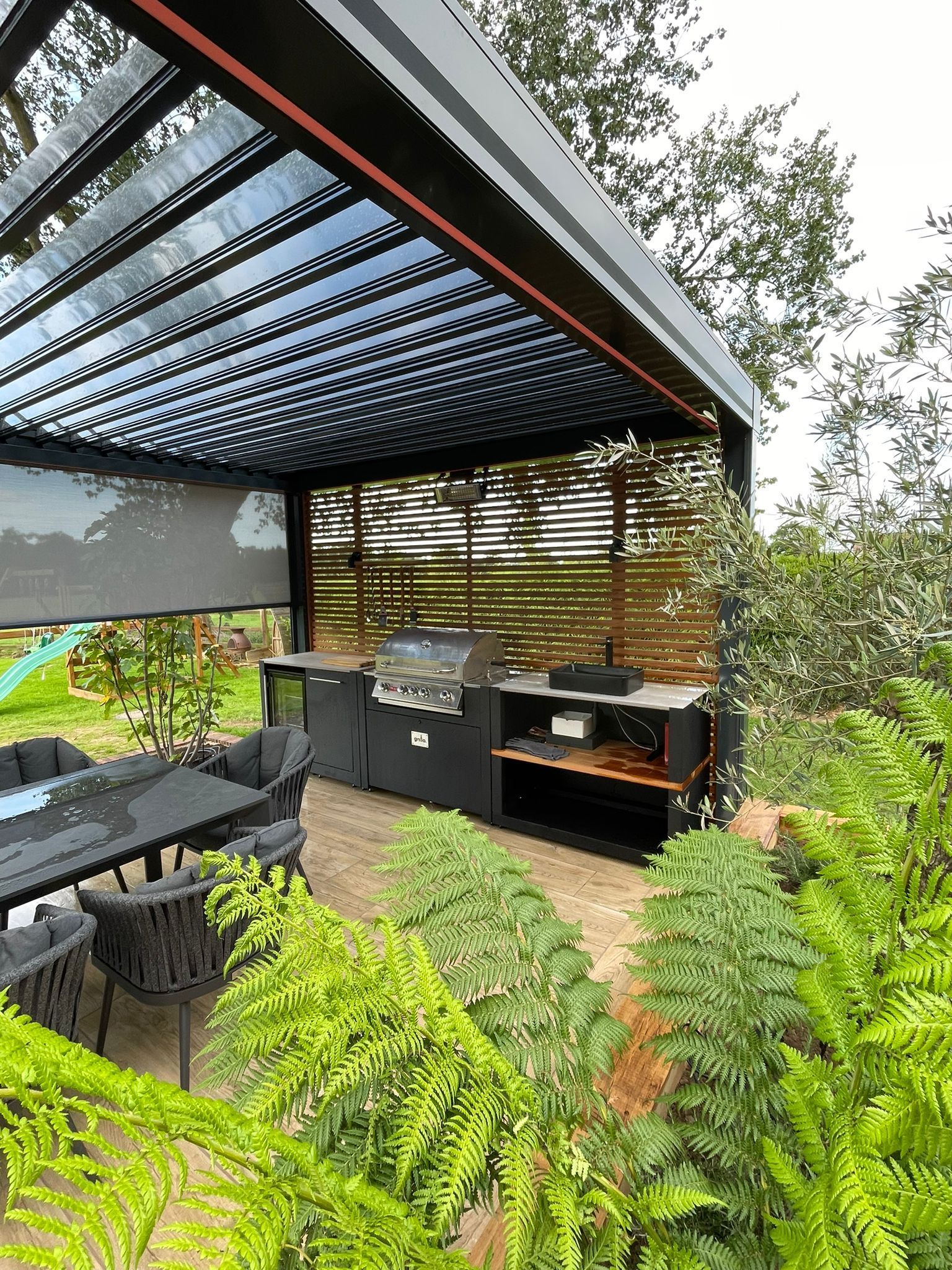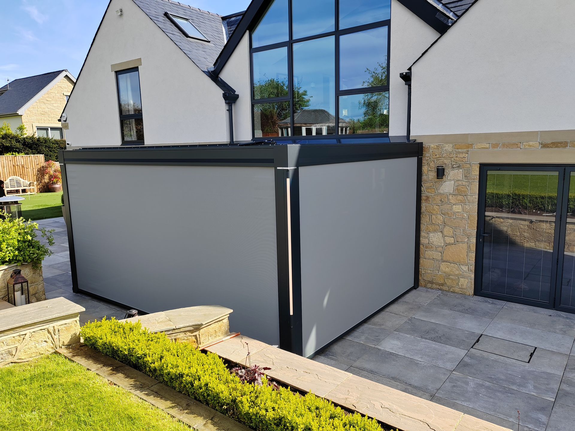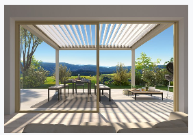 For the ultimate experience, a Bioclimatic Pergola will keep you cool in summer, and warm in winter, giving you a panoramic lounge all-year round. All thanks to the sliding glass doors.